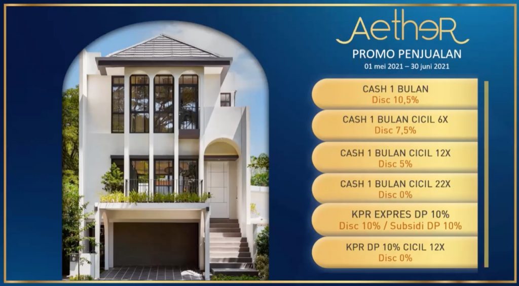 Aether adalah cluster terbaru sekaligus cluster terakhir yang berada di Greenwich Park BSD City yang dirilis oleh Sinarmas Land. Dengan konsep “Resort House” rumah ini dibandrol dengan harga mulai dari 2,6Man.