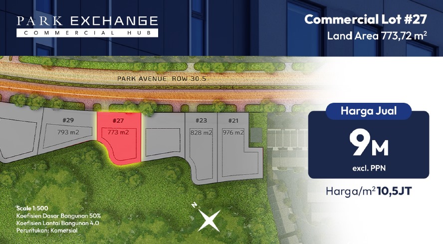Park Serpong kini menghadirkan Kavling Komersial, dijual perdana dengan harga mulai 10,5jt permeter. Berada dilokasi super strategis nempel Gading Serpong.