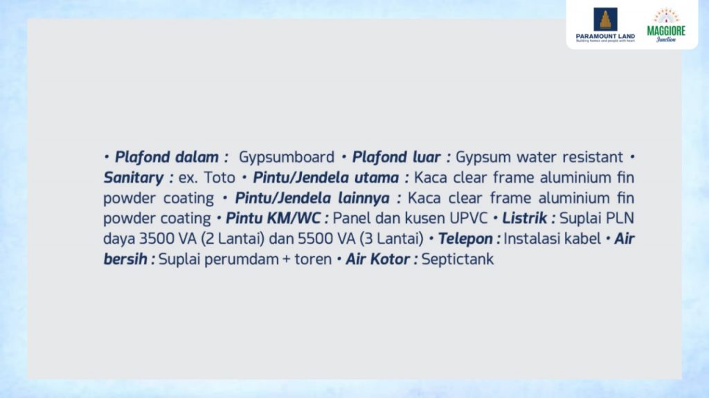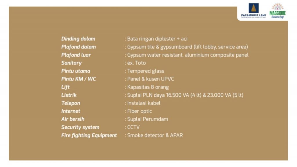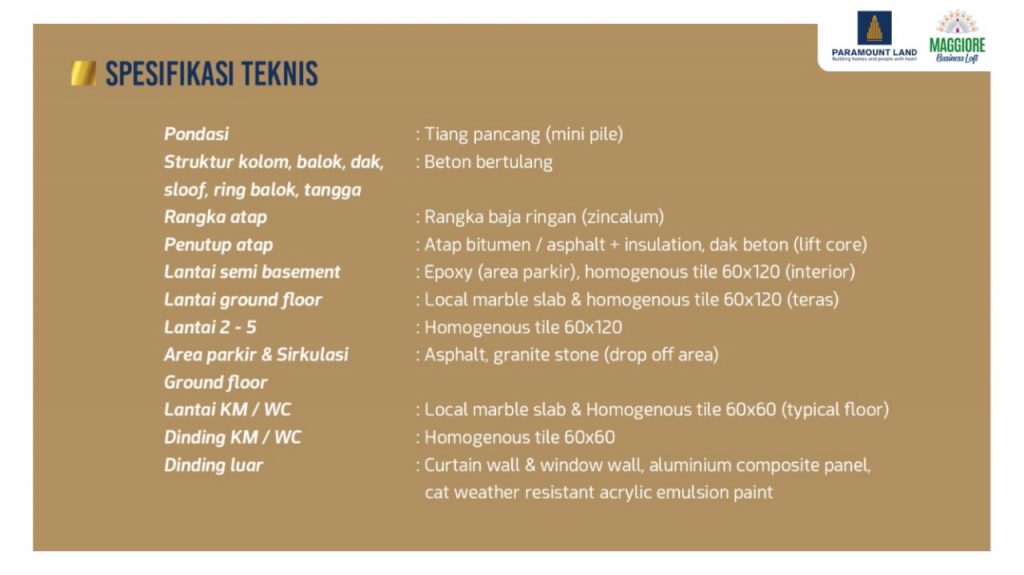 Setelah sukses memasarkan ruko Maggiore Square & Grande, Paramount Land kini menghadirkan Maggiore Business Loft dan Maggiore Junction, dengan Design yang tampak mewah dan premium. Berada di lokasi yang sangat strategis yaitu berada dijalan perbatasan Gading Serpong – BSD City Maggiore Business Loft terdiri dari beberapa tipe ukuran besar yaitu 10×18, 10×20, dan 12×18 dijual perdana dengan harga mulai dari 18 Milyaran dan Maggiore Junction dengan tipe 4.5×12, 4.5×14, 4.5×15, 4.5×17, 5×11, 5×12, 5.5×11, 5.5×12, 6.5×11, 6.5×12, dan 6.5×15 dengan harga mulai dari 2,8 Milyaran.