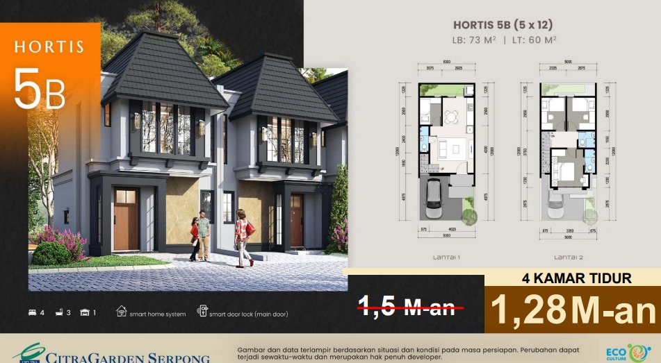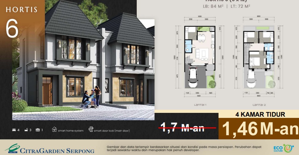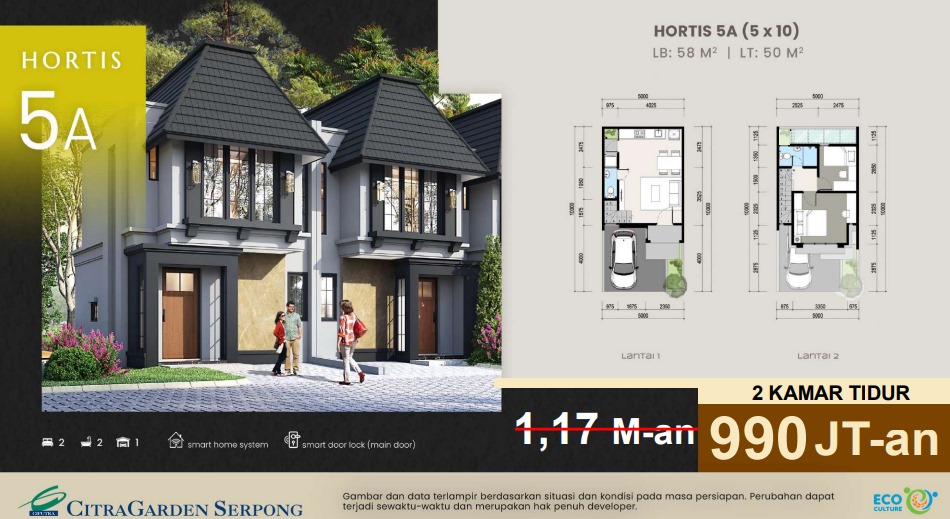Cluster Hortis berada di Citra Garden Serpong. Lokasi 1 menit ke Stasiun KA Cisauk,